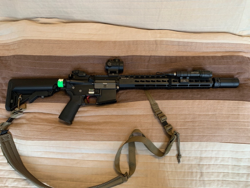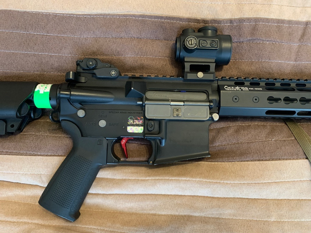 Zvažuji prodej mojeho kveru, jde M4/AR15 od Specny. Zbraň je kompletně upravená. Vnitřek: Maxx model komora M4a pro, ML gumka super macaron 60 aeg, ML hlaveň 6,02, SHS 18/1 superzátěžová kola, RA pružinka ramínka podavače a západky zpětného chodu, GATE Titan procesorovka s maxx cnc spoušť červená, ASG motor boost 30000 dlouhý, Action army hliníková hlava válce V2, epes tryska aeg, RA píst s ocelovým hřebenem, epes hlava válce pom a další. Vnějšek: PTS pažbička, octaarms předpažbí keymod, vector centurion kolimátor 1x30, kopie svítilny surefire s tlakovým spínačem, a warden qd tlumič s kompikem 14mm levotoč. Zbraň je naladěna na 1,7J s 0,28g kulema, zbraň byla stavěna na přesnost, dostřel a spolehlivost. Zbraň byla postavena a servisována v Airhard.cz. Mohu doložit faktury se všemi díly. Ke zbrani je 9x midcap na 120 kulí Specna arms, mohu přidat i popruh od Helikonu co je na fotce a ještě nějaké další harampádí co k tomu patří a přepravní tašku 8FIELDS. PRO VÍCE INFO PIŠTE, REAGUJI TAKŘKA IHNED. Mohu prodat jako celek, i bez příslušenství. Záleží jak se dohodneme.