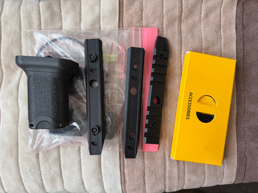 Nabízím AR/M4 od Specny. Zakoupena a servisována v Airahard.cz před 4 roky, zároveň proběhl lehký upgrade, později došlo ještě na další upgrady do stádia, kde je zbraň komplet upravená. Aktuálně je zbraň sestavena na 1,7J při 0,28g kulích, na přenost, dostřel a spolehlivost. Všechny faktury od servisů mohu doložit. Kabeláž v tubusu pažby s konektorem Dean, pohání to celé 11,1V baterie LIPO. Nikdy jsem s ní neměl problém. Vevnitř: SHS superzátěžová kola, Epes tryska, action army hliniková hlava válce, SHS ramínko podavače, ASG motor boost 30000, Gate titan procesorovka s cnc spouští Maxx model, RA píst s ocelovým hřebenem, Epes hlava pístu, Válec SHS nerez, Maxx model komora s ML precizní hlavní a hop gumkou ML super macaron 60 a další. Vnějšek: PTS pažbička, octaarms předpažbí tuším 13,5". Ke zbrani kompenzátor s QD tlumičem WARDEN 14mm levotoč, 2x zásobník mid cap na 120bb, 2x baterie lipo, načatá láhev kuliček 0,28g GG a drobotina jako přídavné lišty na keymod, přední grip. Od posledního servisu v roce 2023 odehrála pouze pár her a celkově má málo nastříleno. Na ceně se můžeme rozumně dohodnout. Zbraň bez investic.