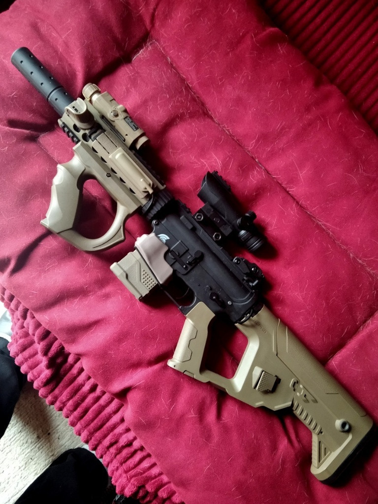 Prodám M4 SD Sportline 7" Alpha (LT-15 Gen.2) od LANCERu kupovaná loni v létě (ještě rok v záruce), nová, nikdy nestřílená. Zbraň je v základu, tělo polymer. Plně osazená, tak, jek je na fotkách – kolimátor Discovery + montáž, An-Peq – redlaser, svítilna, switch+montáž, grip, svítilna, palcové oko. Vše jak je na fotografiích. Ke zbrani – druhá pružina (120), malý grip, 7x zásobník, původní mířidla, 3x akumulátor + 2x nabíječka, krytky Ris lišty… Dále úplně nový chest rig od MFH, doplněný o pár sumek. K tomu všemu taktický opasek osazený sumkami, popruh, rukavice s ochranou kloubů, loketní chrániče, brýle, 2x pistolové pouzdro, zásobník na kuličky ve tvaru lahve + nějaké ty kuličky, ligh sticky, 2 GBB granáty, headset... Vše jak vidíte na fotografiích. Stačí se pouze nastrojit a hurá do akce. Skoro vše je nové. Pouze jako celek za 9000 (PC za vše cca 18 000). POUZE OSOBNÍ ODBĚR ve Štětí (okr. Litoměřice, Ústecký kraj) Při rychlém jednání přidám nějaké nášivky. Ze zdravotních důvodů končím se softem.