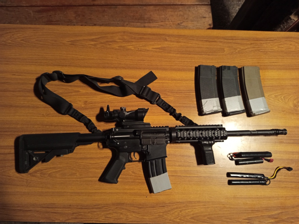 Zdravím prodám útočnou pušku M4A1 od značky CYMA přidám k ní 4 zásobníky, dvě baterie, optiku a popruh, uvnitř Stock, tělo celokov, výkon 1,5J, redukuji sbírku proto prodávám, posílám zásilkovnou, pro více info pište na e-mail