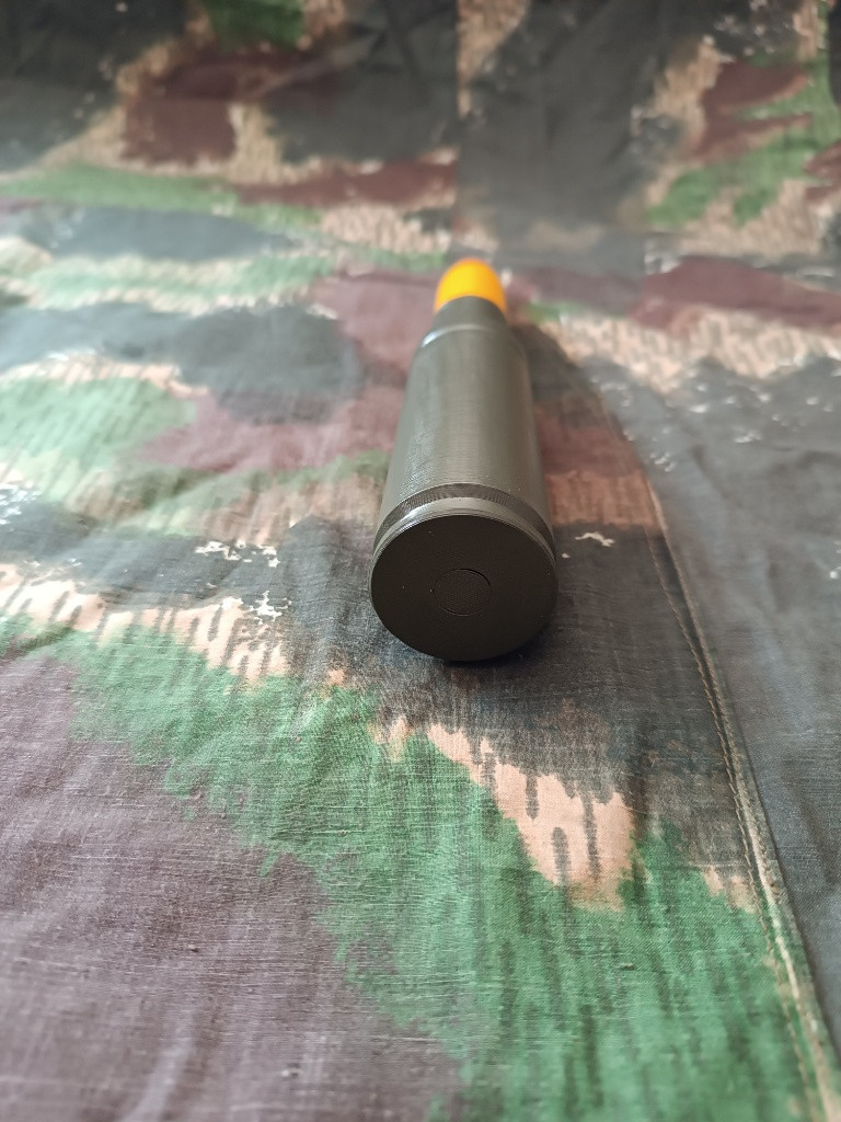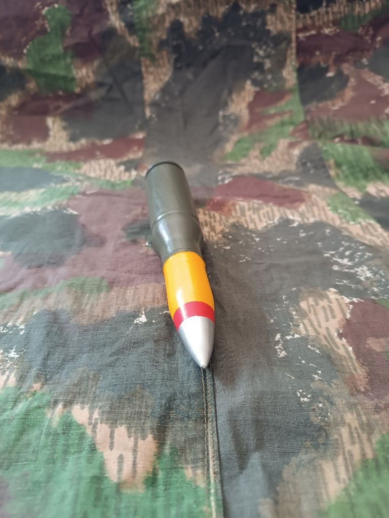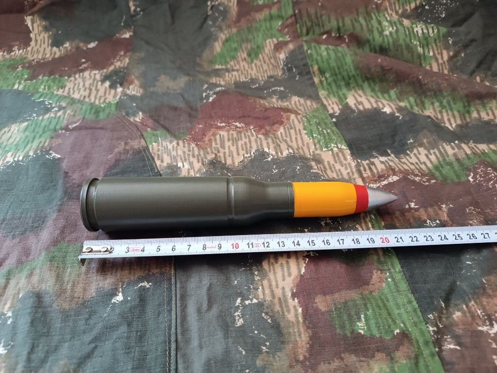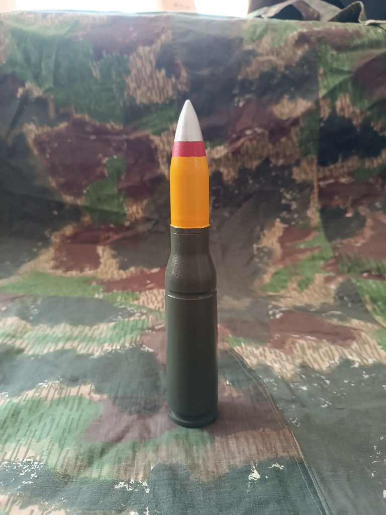 M792 je americký 25mm vysoce výbušný zápalný náboj se stopovkou (HEI-T) používaný v automatických kanonech (např. M242 Bushmaster vozidel M-2 Bradley nebo GAU-12 letounů AV-8B Harrier II ). Tento náboj má efektivní dostřel 2 200 metrů a je vybaven roznětkou s funkcí sebedestrukce. Detailní 3D tištěná maketa, ručně broušeno a lakováno. Rozměr 1:1 Materiál 100% PLA plast, neobsahuje žádné výbušné či jinak nebezpečné části. Možno zaslat zásilkovna, balíkovna nebo osobní předání Brno, případně dle domluvy. Cena dopravy 89kč do výdejního místa (boxu) případná dobírka +26kč. Kontakt prosím na email tel smyšlený.