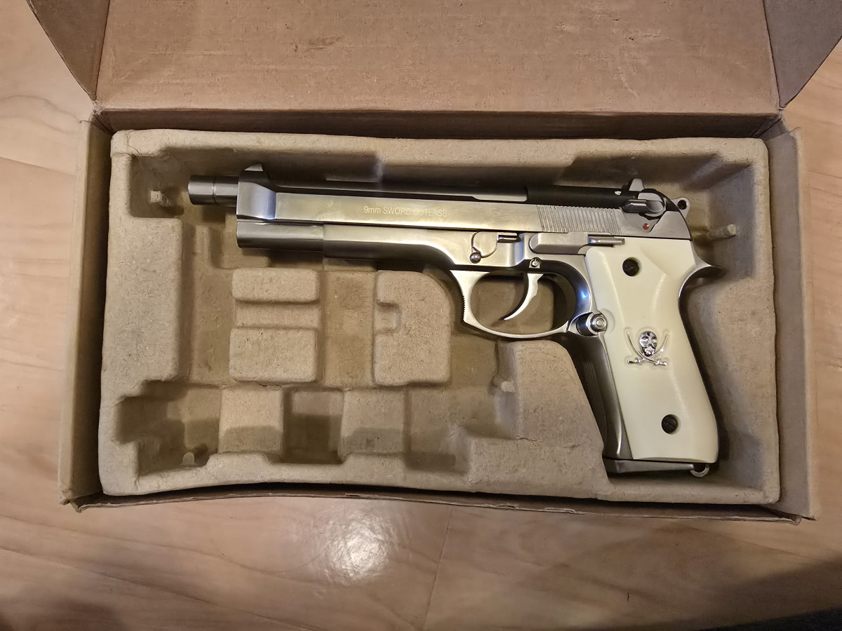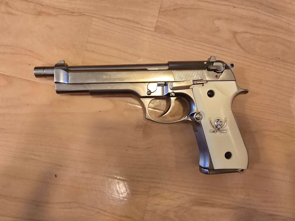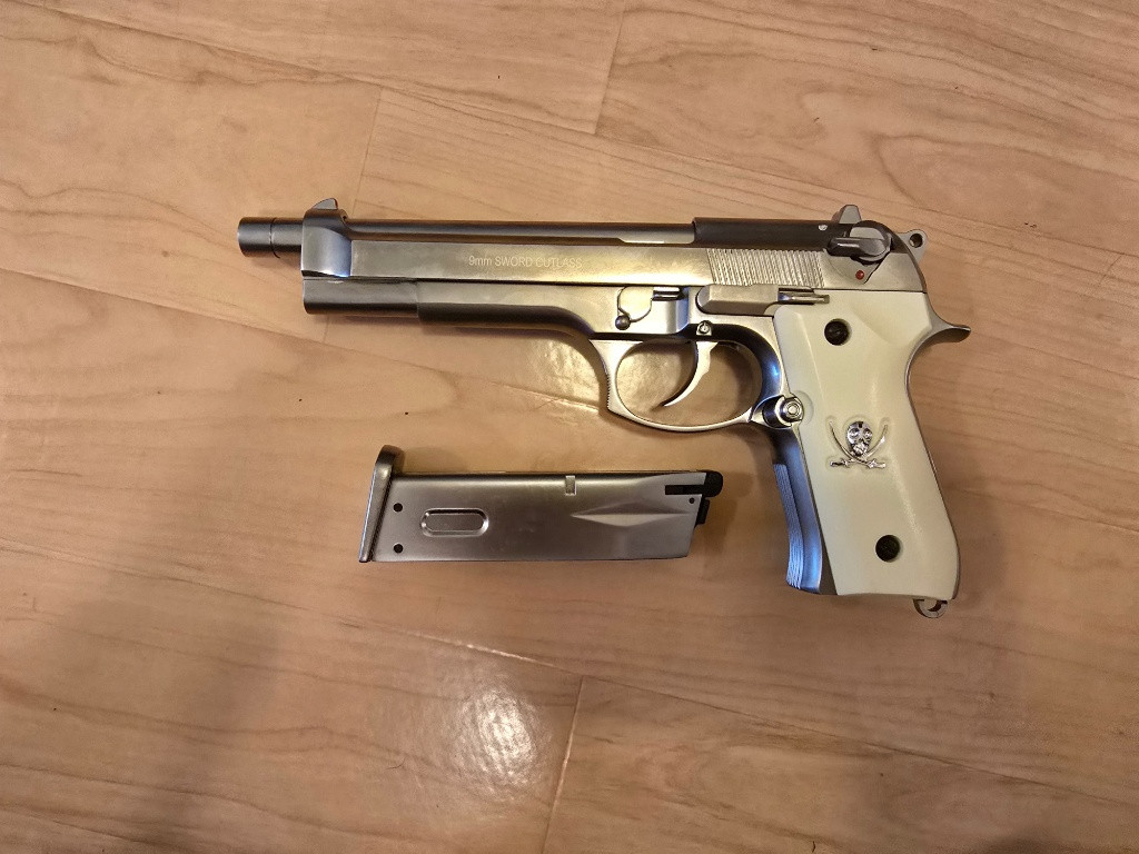 Prodám WE M92 Sword Cutlass — gas blowback (GBB), střelivo 4.5 mm BB, kapacita zásobníku ~25–28 ran. Plně funkční, full-metal, prodej pouze osobám 18+.