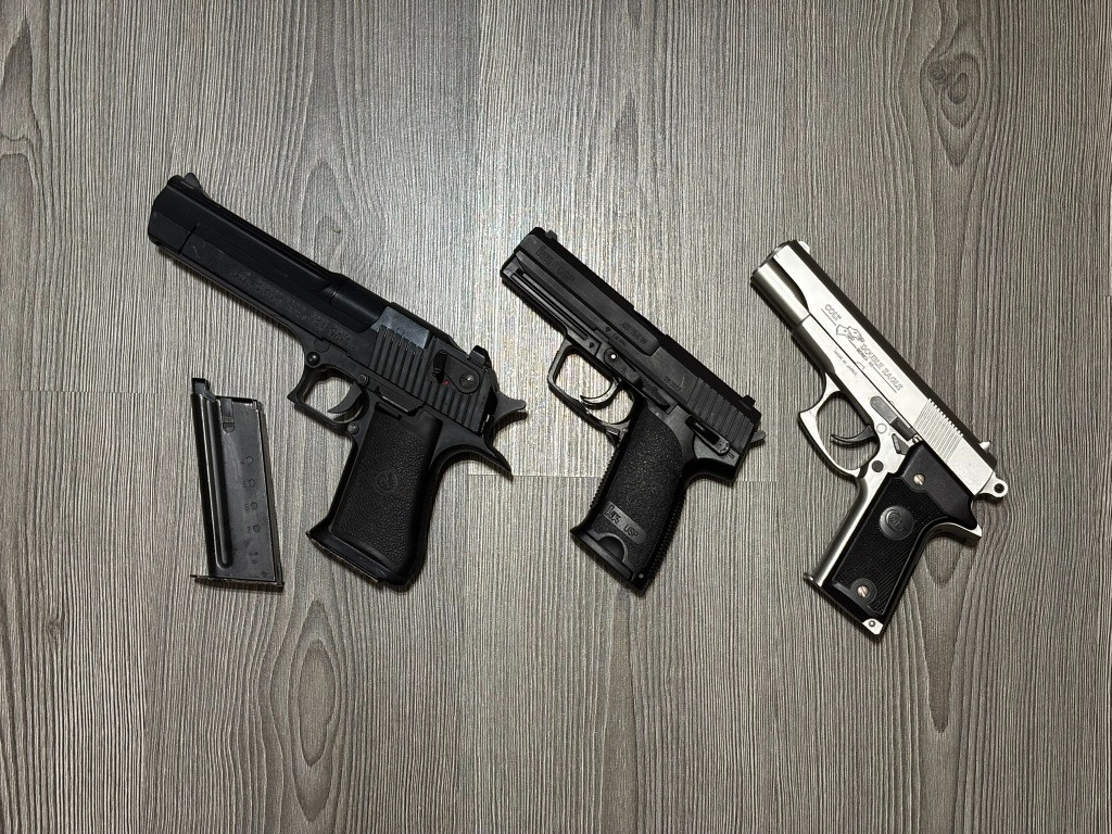 Prodám tři manuální pistole. KWC Desert Eagle .50AE Tokio Marui H&K USP .40 Tokio Marui Colt Double Eagle Jedná se o starší kousky ale v podstatě, nepoužívané. Obě Marui pistole mají kompletní ražení a jsou v perfektním stavu. Desert si už hodně zažil a má občas problémy s podáváním kuliček, které nezapadnou hned do komory, ale mimo ní. Přiznám se, nebral bych ho jako spolehlivou pistoli takže je to spíše na ozdobu do polička nebo dekorace. Je to asi v plynulosti natahování, kdo ví. Když střílí, má dobrý výkon, regulovatelný hop a zásobník na více než 20 ran. Při prázdném zásobníku zůstane po natažení závěr vzadu. Zásobníky mám dva. Jo a je fakt těžkej díky kovovému rámu uvnitř. Z venku samozřejmě plast. Vhodné spíše jen jako doplněk na larpy nebo stylovka. Osobní předání Praha nebo poslání zásilkovnou (hradí kupující)