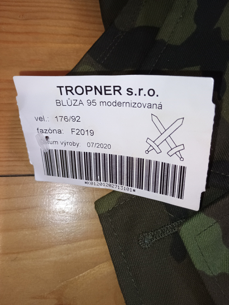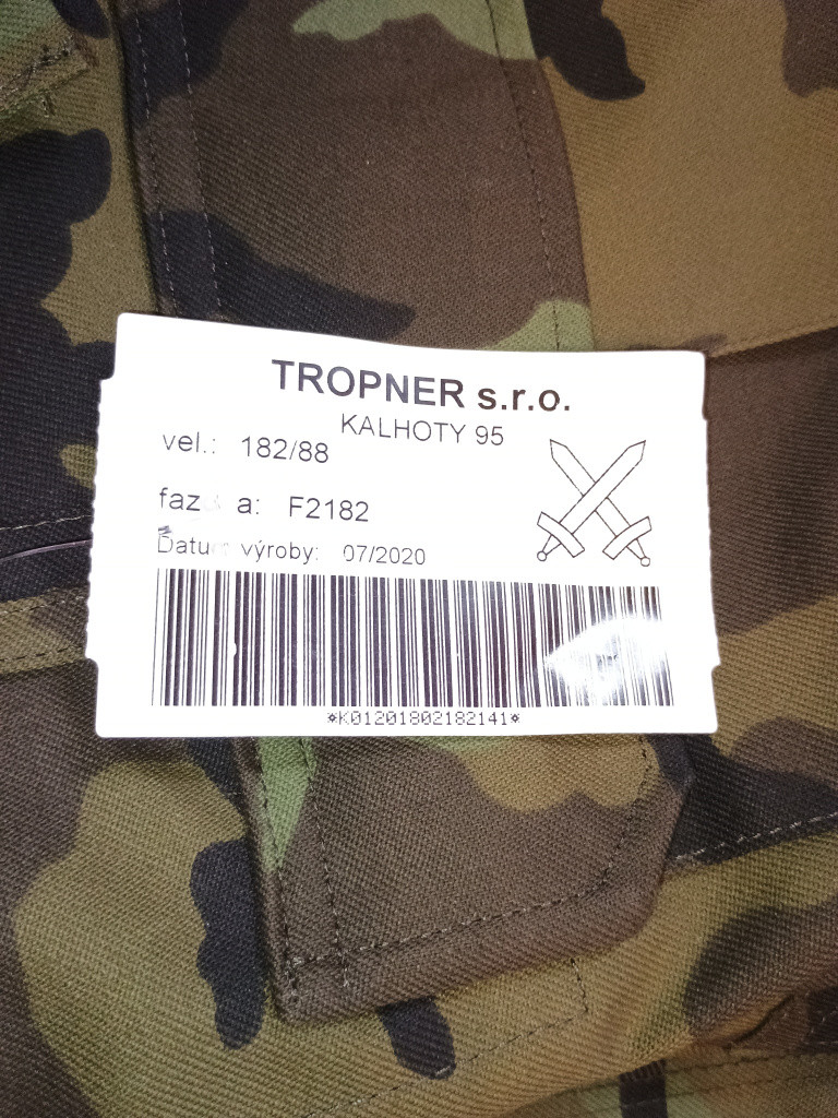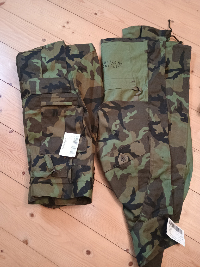 Prodám komplet nové celoroční maskáče vz.95 , Kalhoty 182/88 , blůza 176/92.