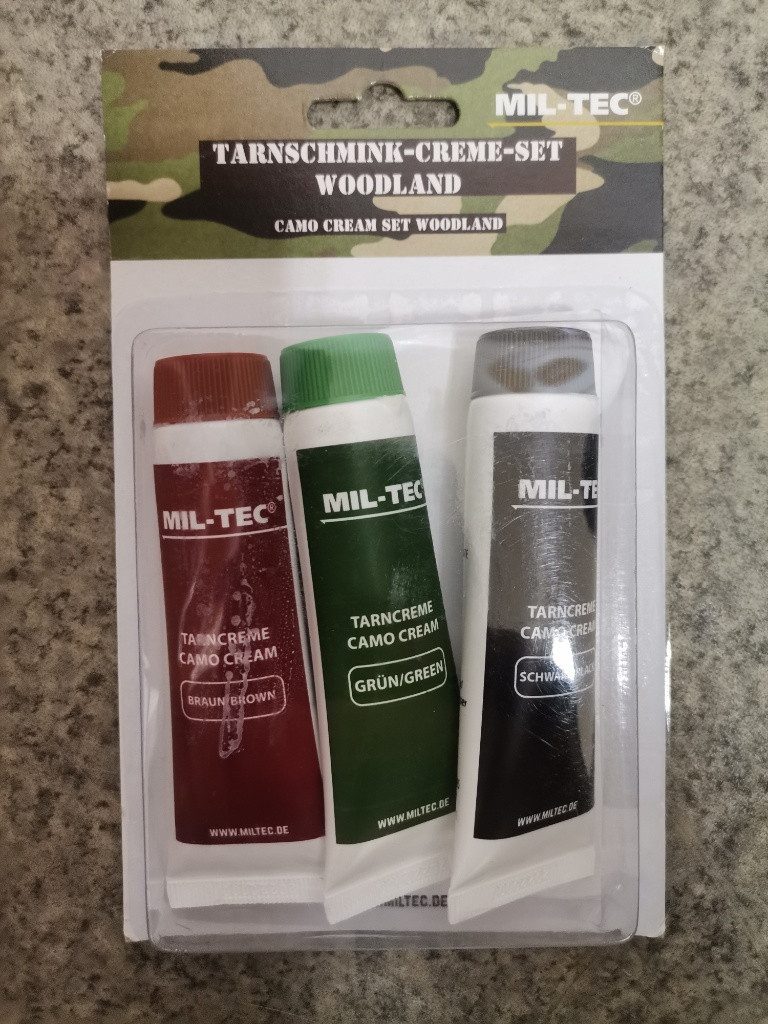 Barvy maskovací krém tuba sada 3 kusy Woodland Camo Mil-Tec®. Stav: NOVE