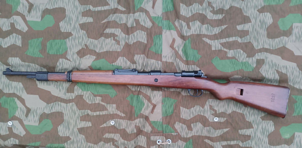 Mauser 98 k. Odlitek z 90. tých let. Vyráběný Zbrojovkou Brno. originální pažba (skvělý stav), originální hlaveň s mířidly a kování. Mířidla pohyblivé. Ostatní je odlitek.Vzhledem k nedostupnosti expanzů varianta na akce. Nejde o zbran ve smyslu zákona o zbraních. Možné nabývat volně.