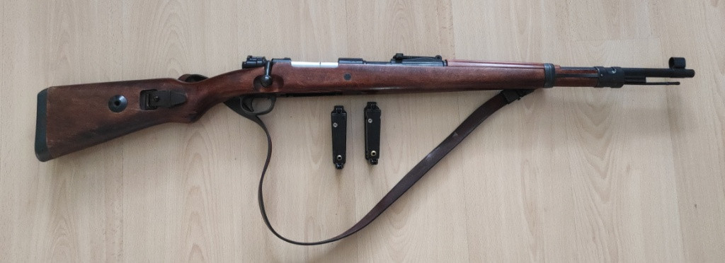 Prodám legendární airsoftovou plynovou pušku Mauser kar98k od firmy Tanaka. Zbraň je ve skvělém stavu, úsťová rychlost 170 m/s , velmi přesná. Ke zbrani přidám 2 plynové zásobníky značky TANAKA, celokovový zásobník na CO2 bombičky, kuličky Magnum (0,43) , greengas , redgas, blackgas+ celokožený popruh s ražením. Tagy: airsoft, WW2, Německo, druhá světová válka, zbraně