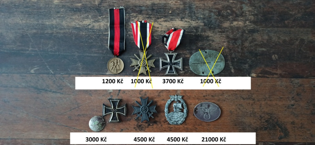 Prodám vzácné originální medaile odznaky a vyznamenání. Ceny jsou uvedeny níže. Ruším sbírku. Více fotek pošlu do emailu nebo whatsApp. Koukněte i na mé další inzeráty. Odešlu balíkovnou nebo zásilkovnou, cena dopravy 90 Kč. Není problém ani osobní předání. Na prodej: Železný kříž 2. třídy 1939. Značen 66 Friedrich Keller Oberstein. Cena 3700 Kč. Medaile Sudety. Cena 1200 Kč. Záslužný kříž 1. třídy s meči. Značen 4. Steinhauer & Lück. Cena 4500 Kč. Odznak - placka příslušníka Gestapa. Nález. Cena 21000 Kč. Odznak pro posádky pomocných křižníků. Nález. Značen. Cena 4500 Kč. Železný kříž 1 třídy. S matkou. Nález. Cena 3000 Kč.