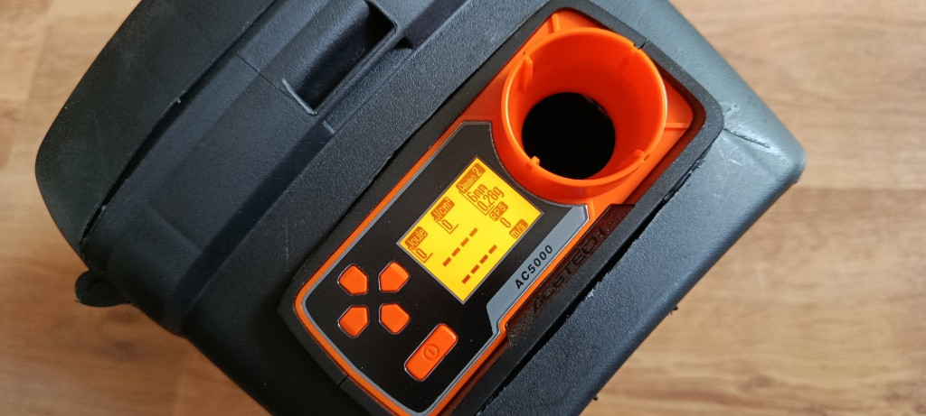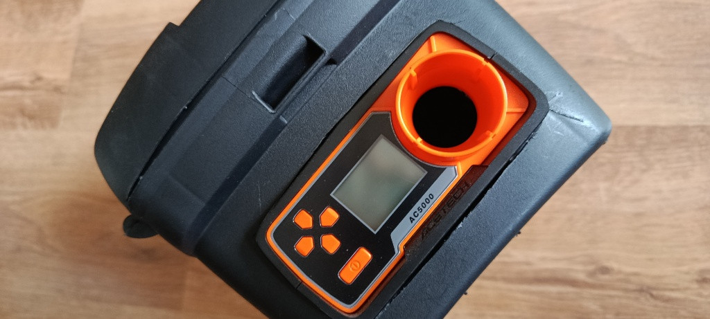 Měřič úsťové rychlosti střel AC5000 v kufříku na cesty, uvnitř je "vycpávka" takže do toho jde v pohodě střílet a měřit.