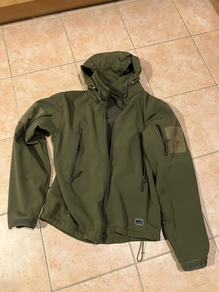 Skvělý stav, měl jsem ji 2x na sobě na dovolené na horách. Velikost M, od začátku nedržel sucháč na rukávech, tak jsem ho ustřihl. viz foto. https://www.militarysklad.cz/detail/bunda-scorpion-softshellova-zelena-1000092586