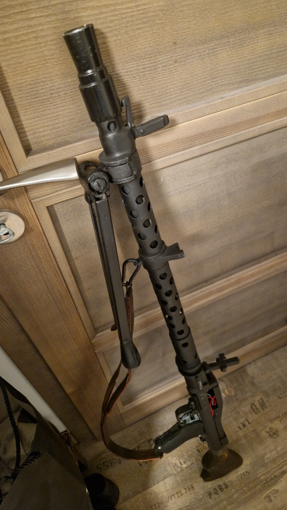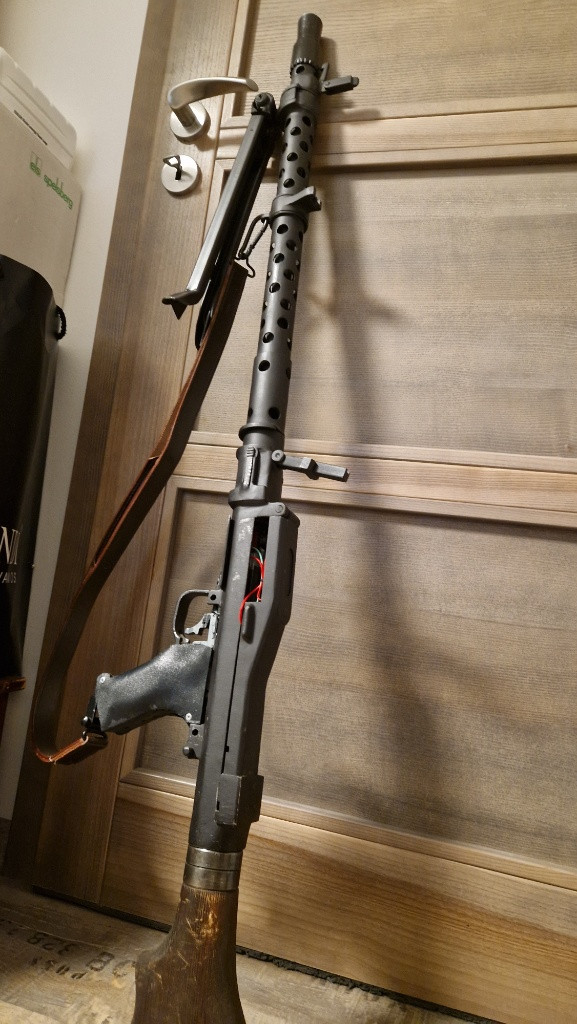 Prodám rozpracovany projekt MG 34 Zbraň je schopná střelby pp výměně hop up komory Zbraň je vyrobena po domácku Bylo použito profesionální pískování, fosforování a černění Ke kulometu je i bubnové zásobník G&G Pište pouze