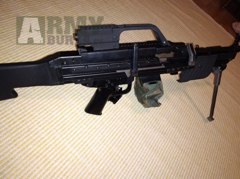 na prodej projekt MG43 - celokov - viz foto. Některé detaily z origo nefungují (pažba není sklopná, není rychlovýměna hlavně, není pojistka a dvojnoha nemá výškové štelování. Na druhou stranu tam zas není moc co rozbít Tělo je ocel plech 1,5mm a všechny hlavní díly jsou kov. Uvnitř mech z 249 a hop. Krabice je velkokapacitní točák. Momentálně střílí, ale není odladěno na výkon. BTW - levné to není, lehké také ne.... Mg43, MG-43, MG4