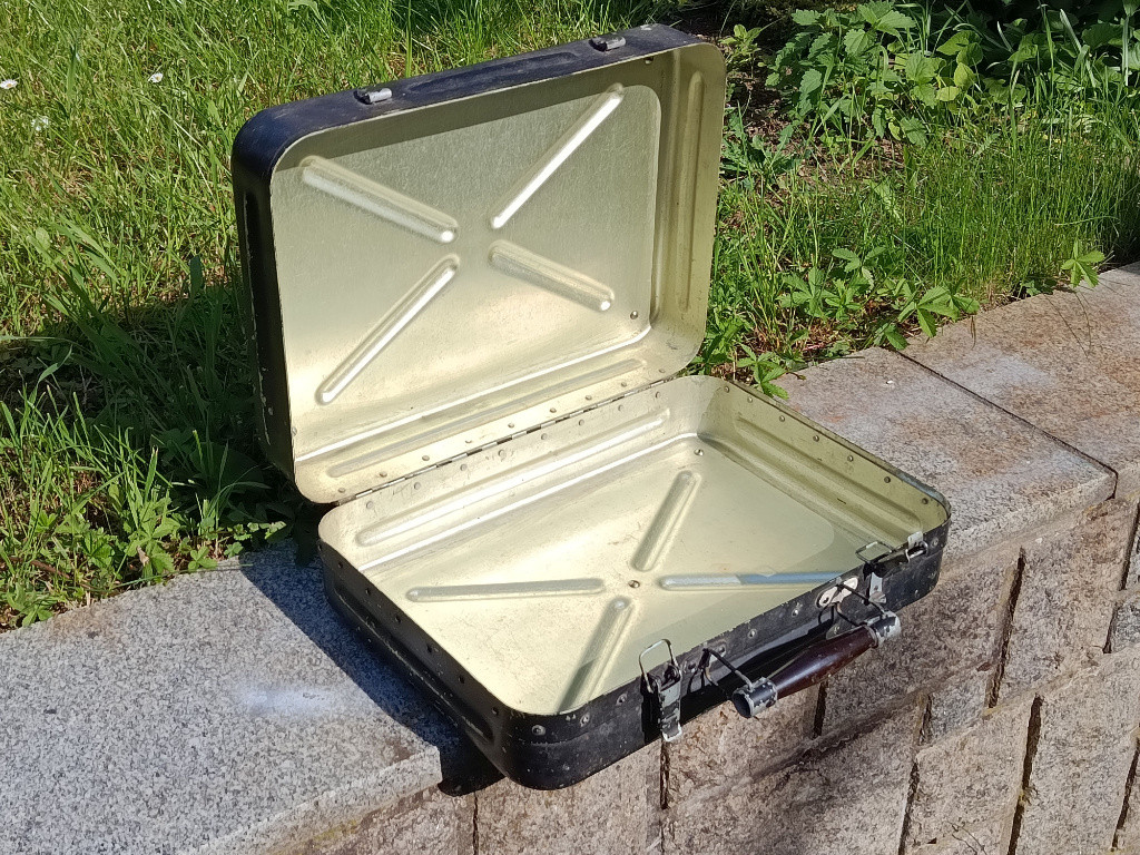 Pro sběratele, muzejníky a letecké fandy nabízím památku na MIG 19 - originál sovětskou bedničku z příslušenství k letadlu. Je celohliníkoná, nepobouchaná, vnější antireflexní černá barva je místně odřená.,