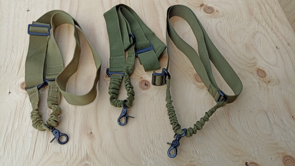 Popruh jednobodový- 50 // Opasky černý - 100 // Zelený – 30 // Čutora v obalu – 50 // Potah Mandra – 70 // Potah oliva – 60