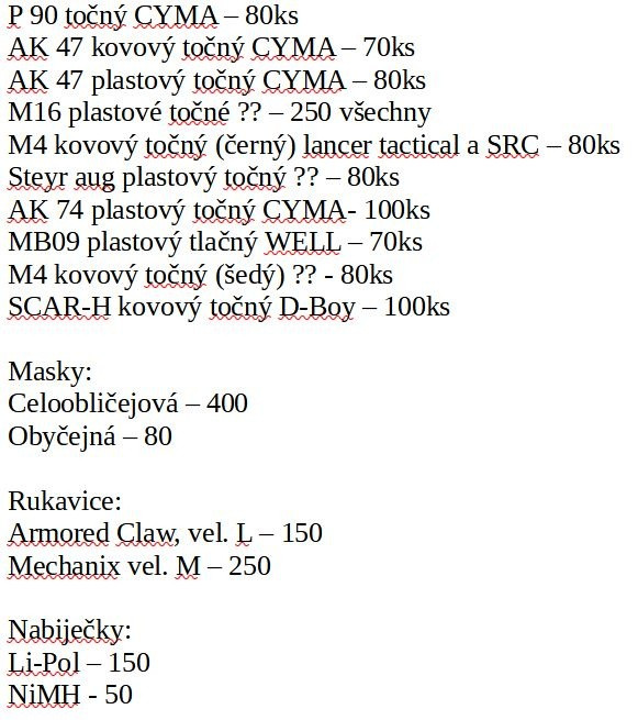 | Nabíječka | Airsoft | 22. 07. 2024 22:01 |