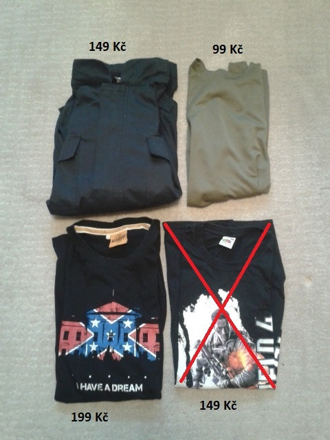 Prodám věci mix: triko značky Dixie Gear I Have A Dream (velikost XXL), triko funkční GB (velikost L) a policejní blůza (velikost M), stav a cena viz. foto. Předání Praha nebo zásilkovna hrazená kupujícím. Inzerát platí do smazání.