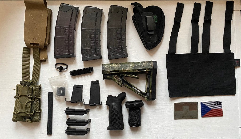 Prodám málo využívané doplňky na AR 15, Přední vertikální rukojeť BCM GUNFIGHTER - PICATINNY BCM m-lok rail cover Airsoft kopie Magpul CTR pažby Kufr na zbraň, kovové panty, vnitřní délka 82 cm Kompenzátor .223 rem PICATINNY lišta na M-lock Custom Gear sumka na AR zásobník s chlopní Custom Gear přední troj sumka na AR zásobníky Gas block ocelový - 0.750 QD Airsoft 3 ks Zásobníku Lancer L5 AWM 30 ran - průhledný kouřový Pouzdro Data Ručka Grand Power Nášivka vlajka Česká republika Dual IR Clawgear®-zip KRYTY ZÁSOBNÍKU MAGPUL AR-15/M16 PMAG M3 MAGAZINE LIMITER Ceny dohodou