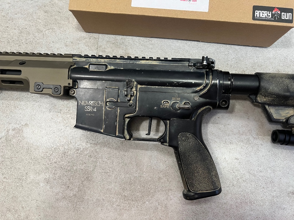 Prodám tento krásný kousek. Zbraň je velice populární model ssr4 celokov od novritsche aktuálně nelze koupit v ceně 8000czk, custom předpažbí od angry gun v hodnotě 4500czk - v ČR nelze koupit. V ceně nechám dvě baterky, nabíjecí stanici, 11 zásobníků a 7 pytlů kulí. To všechno v hodnotě 17500czk. Jsem ochotný se na ceně dohodnout