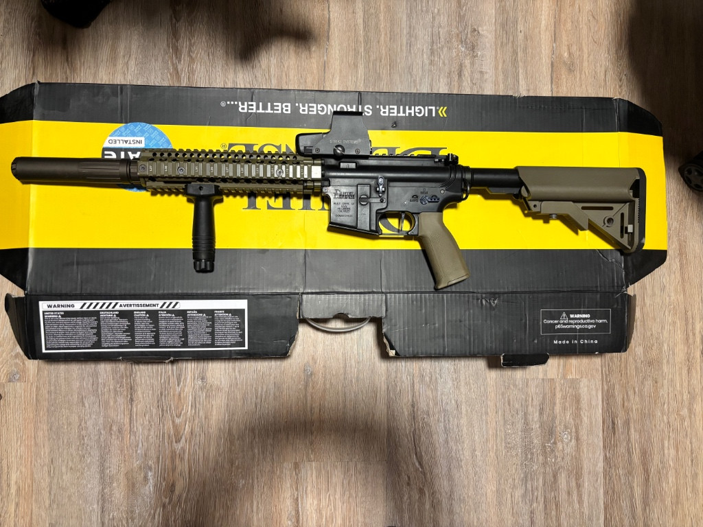 Prodam mk18 zrovna v nefunkcnim stavu problem je asi nekde u elektriky. Zbran ma nastrileno max 10k V mechaboxu neni nic puvodniho Valec:Guarder plnej Hl.pistu:Epes Hl.valce:Epes Tryska:Epes Procesor: gate astor Pist:retroarms Raminko podavace: carbonovy fps softair Kola: 18:1 cnc shs Pruzina: guarder 120 hlaven: maple leaf 410 Guma:maple leaf super macaron 60 Komora:maxxmodel Loziska jsou novy Jelikoz je zbran nefunkcni tak zbran necham za malo penez nemam cas to opravovat a celkove na airsoft
