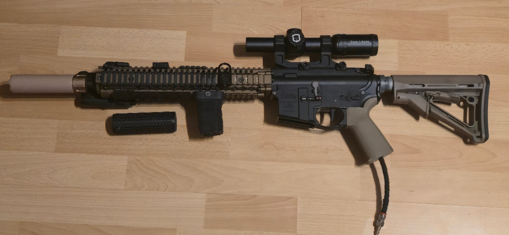 Zdravím, prodám dlouhou MK 18 s licencí DD od Specna Arms. Zhruba před 14 dny byla v servisu. Instalována je nová komora od Gate s TDC. Dále je tam Pulsar D2. Už je tam vyměněná mechanická část, která měla výrobní vadu. Novou část posílal sám Gate. Výkon bohužel budu muset dodat později. Všechno jde nastavit přes aplikaci od Gate. Prosím jen normální nabídky. Rovnou napište cenu co za to chcete dát. Chci spíše jen prodej. Prodaváno jako celek - všechno co je v seznamu S airsoftem končím.