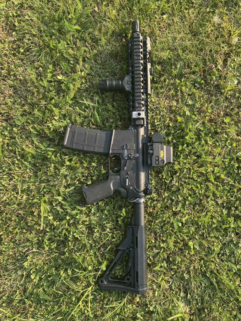 Zdravím, prodám mk18 Zbraň je stará 6 let, z toho 3 roky hranná, zbytek pověšená na zdi. Prodávám kvůli přechodu na HPA a na nové tělo Ve zbrani je Leviathan v2 Jinak měněno uplně všechno (Retro arms CNC mech, SHS 18:1 kola, SHS zátěžový motor, 6,03mm hlaveň, ProWin Hopka) Tělo už má něco za sebou, ale jinak vše funguje jak má. Do zbraně investováno přes 20 tisíc. Ke zbrani vše co je na fotce MP TGD QD grip, Eotech (značku nevím), Surefire scout svítilna se spínačem, popruh Akorát prodávám s jinou pažbou než na fotce, dám k tomu klasickou Crane pažbu.