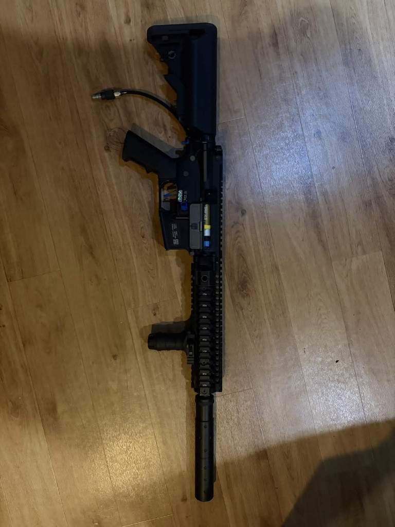 Posílám do světa svou MK18 z důvodu nevyužití. Uvnitř je Polar* Kythera V.2, hopka tam je prowinka se Super gum gumičkou a přítlačným válečkem. Hlaveň je Madbull 6,01mm, 363mm, je tam vyměněný vyhazovák a spoušť oboje CNC. Mohu přidat i nějaké příslušenství případně HPA set za příplatek. Prodávám z důvodu nevyužití, jelikož na airsoft už není tolik času. Při rychlém jednání sleva!