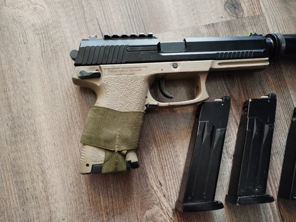 Predám airsotovú plynovú nbb pištoľ mk23 od Tokyo Marui. V zbrani je maple leaf hlaveň a gumka, novritsch tdc hopup. Ku zbrani sú 4 zásobníky, všetky majú novritsch gas router. Jeden zásobník nefunguje, má poškodený napĺňací ventil. Na zbrani je cnc ris lišta na kolimátor. Mám aj rus listu dopredu zospodu. Cena za všetko je 160€. Možná výmena za niečo zaujímavé.