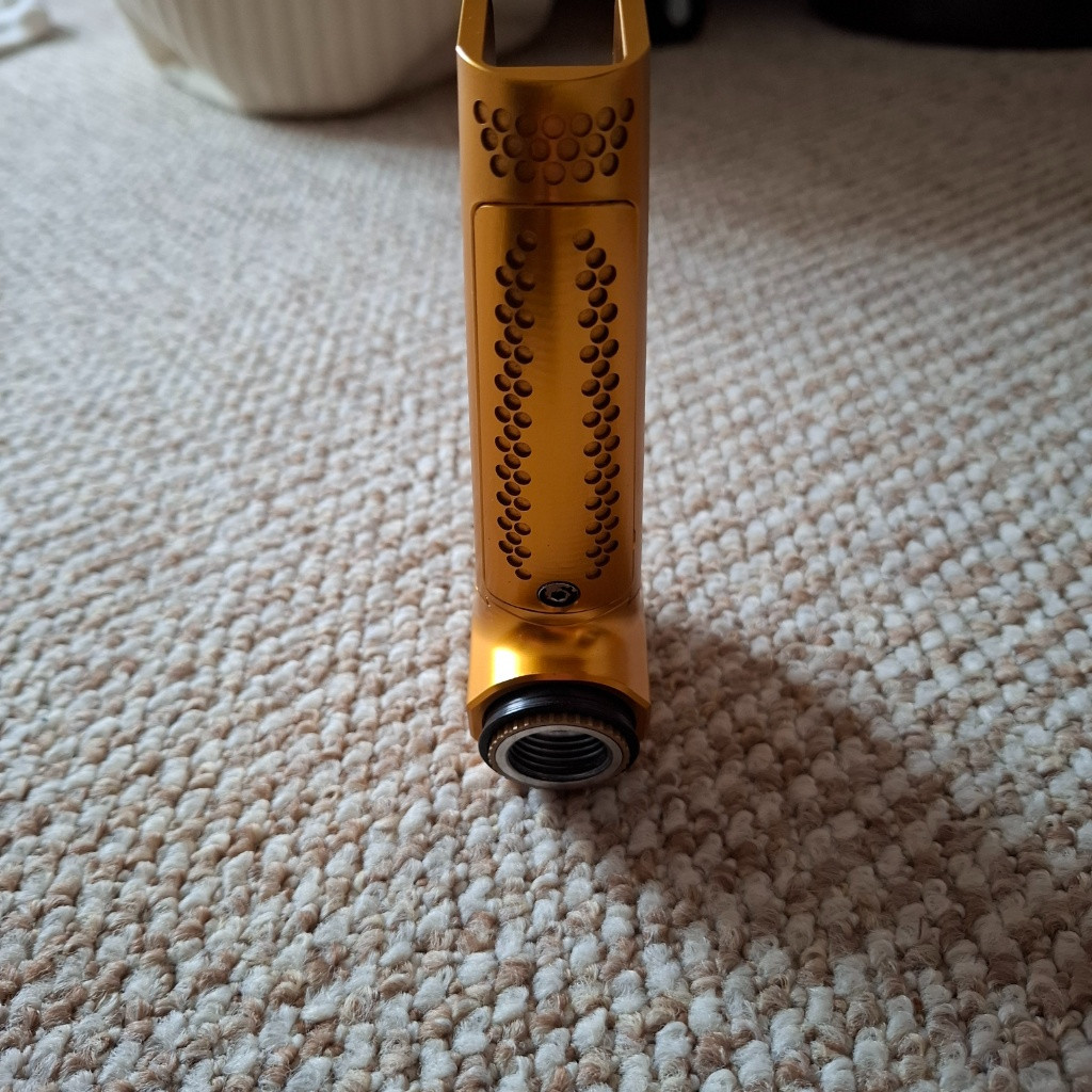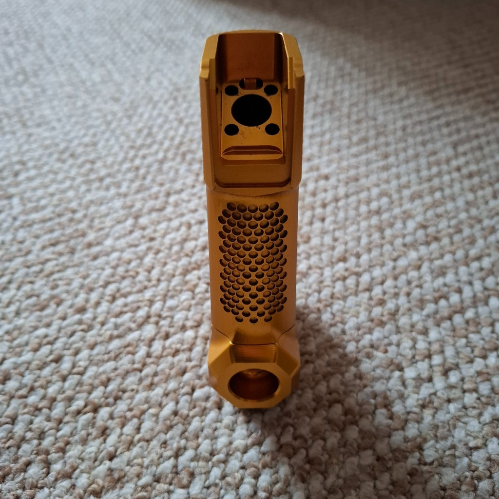 Prodám zlatý Grip od Monk Customs. Jedná se o hliníkovou verzi.Používaný na záložní zbraň. Uvnitř je zabudovaný regulátor P* MR, s jednoduchou rozborkou pro vyčištění nebo výměnu těsnění. Instalovat se dá na jakýkoliv lower M4,AR15
