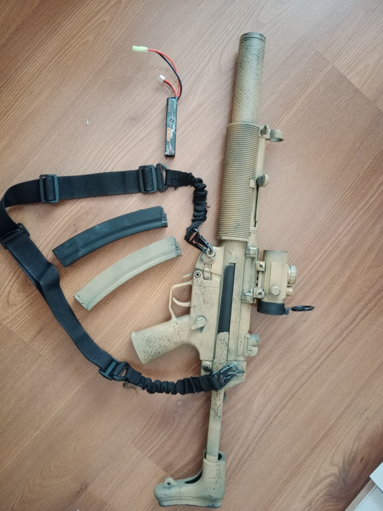 Dávám jí pryč protože ji už nevyužiji. Tělo je plast/kov 1,3J v základu Na zbrani je nástřik (původně byla černá) Odehráno asi 4 akce.. Dám k tomu akumulátor a 2x zásobníky (tocaky) a kolimator MP5 plně funkční Neposílám..jen osobní převzetí