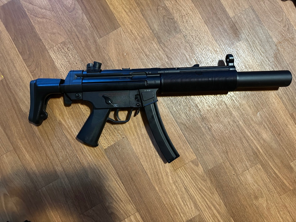 Dobrý den, prodám airsoft samopal MP5 od výrobce cyma. Je to AEG, kterou jsem kupoval minulý rok v říjnu. Zažila pouze jednu akce a jinak byla použita pouze jako dekorace. Přidám ještě 3 tlačné zásobníky, pevnou pažbu, samosvornou molle sumku as-tex ve vzoru 95 a ještě pružinu, která byla také ke zbrani. Cena za komplet je 3500,- + poštovné