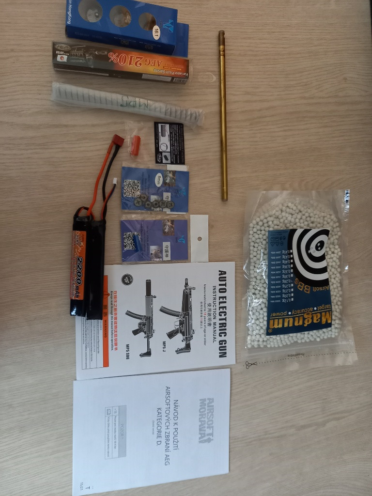 Prodám zbraň MP5.Výměna nějakých dílu ,seznam viz fotky.Doklad o koupi viz fotky.Kupováno před vánocemi.Všechny původní díly jsou součástí.Nové díly a montáž mě přišla na 4 773 Kč. Zbraň sem koupil za 4 450 Kč .Nyní nechám celé za 7300Kč.Ke zbrani nechám orig.točak zásobník+ dalších 5 tlačných.3x Lipo baterku 7,4 V v dobrém stavu. Ris lištu a pytel kulí 28.g.grátis. Preferoval bych osobní předání pro možné vyzkoušení.Zbraň pouze odzkoušená doma defakto nová.Duvod prodeje :vetší váha (nevyhovuje synovi) https://www.airsoftmorava.cz/372-cm041sd6-mp5-sd6-quotblue-limited-editionquot-cyma