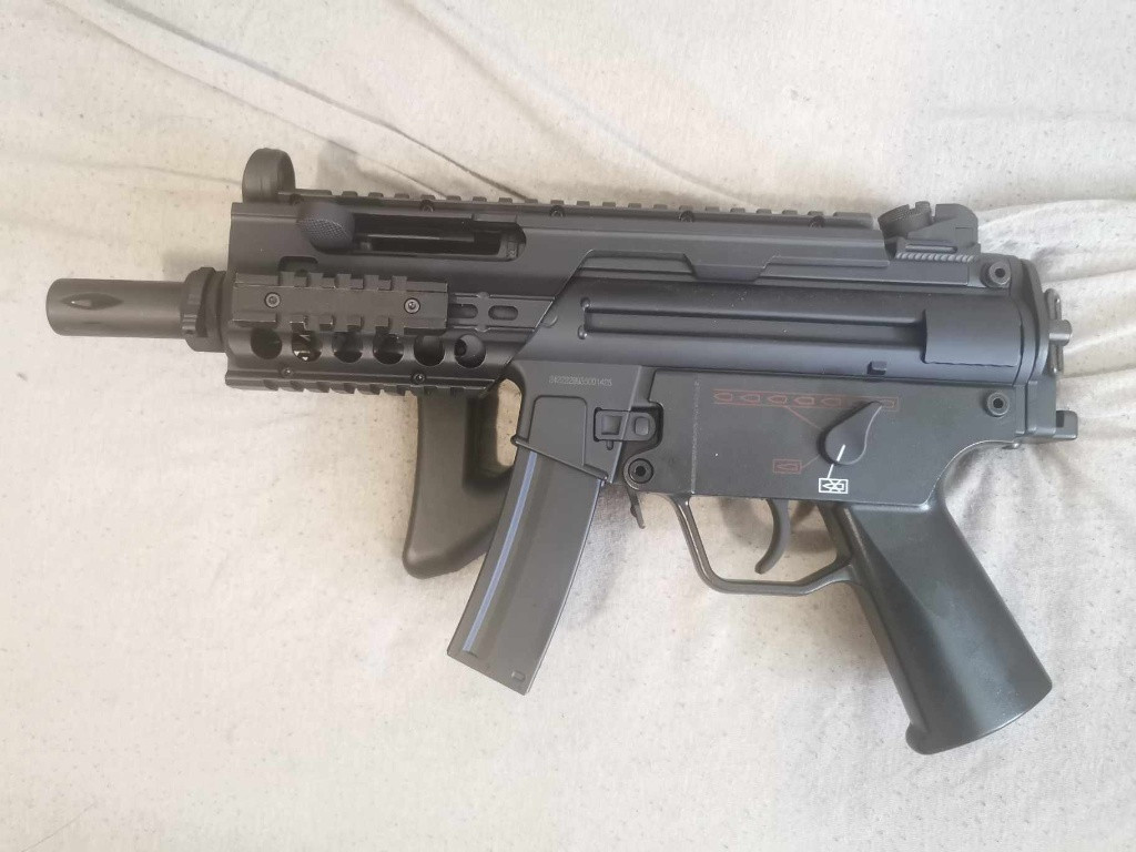 Prodám tuhle, nehranou MP5 celokov, AEG. Nevhodný dárek. Vystřílen jen jeden zásobník a vše funkční. Baterie a k ní nabíječka + originál balení. Zde odkaz na produkt: https://www.airsoft-online.cz/aeg-mp5/mp5k-pdw-cqb--204/