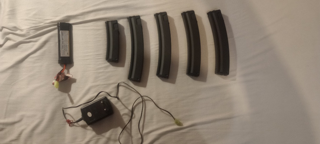Prodám MP5k od JG works s pěti zásobníky, extra vnějšími díly, baterií a nabíječkou. Zbraň je hraná dvakrát a je funkční, ale chce zaservisovat. Prodávám jelikož mám přebytek airsoftek a repliku plně nevyužívám. Pošlu zásilkovou, nebo osobně do Prahy. Kontaktovat mě můžete jak pšes email tak sms.