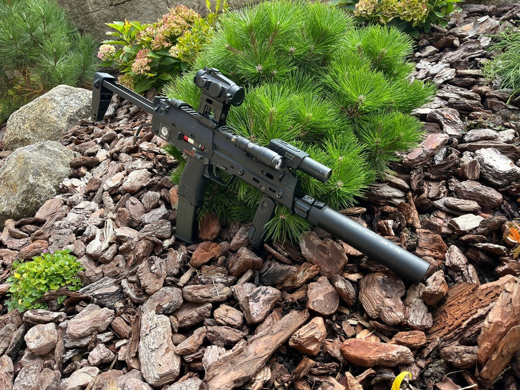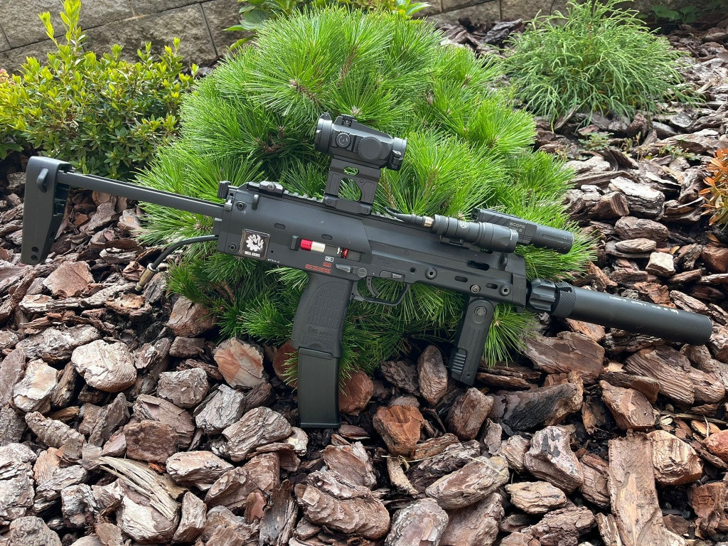 Prodám svojí Mp7 AEG předělanou do HPA . Zbraň byla stavěna původně ve WCAS, ale byla to tragédie, tak jsem to nechal předělat v Hellarms. - Základ zbraň: Mp7 AEG VFC Umarex - Engine: Polarstar F2 - Komora: Maxx komora červená - Hlavěň: Přesná hlaveň PDI (přesný označení nevim) - Upravená spoušť na citlivý chod a rychlé spamování - 5x zásobník tlačný - Tlumič Kdyby bylo cokoliv potřeba, tak stačí mi zavolat. Zbraň prodávám bez příslušenství (světlo, kolimátor, montáž)