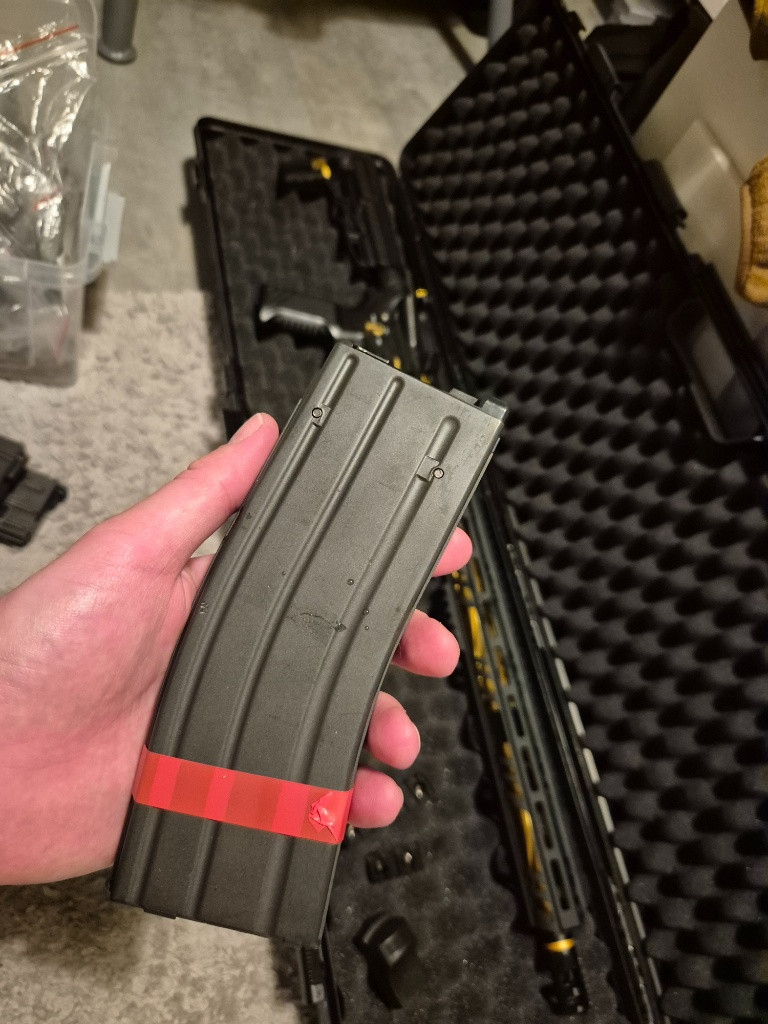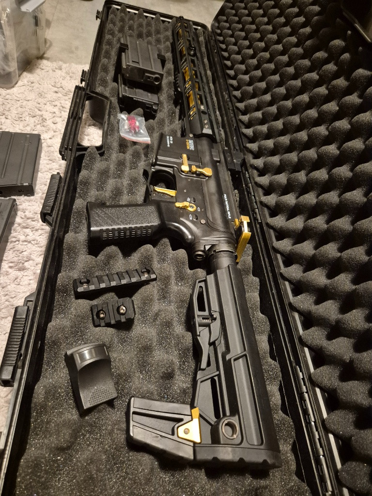 Zdravím, mám tadz na prodej svůj kousek MTR16 G-EDITION. Hraný cca 10x ale protože už na to není moc čas a mám ještě AKX od TM, tak jsem se rozhodl pustit tohle. Kvér je po celou dobu čištěný a konzervovaný chemií na zbraně. Ke zbrani je vše co je na fotce, krom kufru (jeden dlouhý zásobník na 32BBs, druhý zásobník na 20BBs, kde chybí plnící ventilek, třetí zásobník hybrid - kombinace GBB a AEG zásobníku z ventilkem na hadici HPA o kapacitě 100 BBs, kolimátor, nějaké RIS lištičky a neposlední řadě klapka fialová od Poseidonu). Uvnitř je udělaný upgrajdíček - oranžová guma 4UANTUM Friction, hlaveň poseidon 6,05 (myslím 370), regulátor hopu od ANGRY GUN a tvrzená tryska od Pro-Win. Jsem z Olomouce, takže není problém se přijet podívat. Dávám určitě přednost osobnímu předání z několika důvodů.
