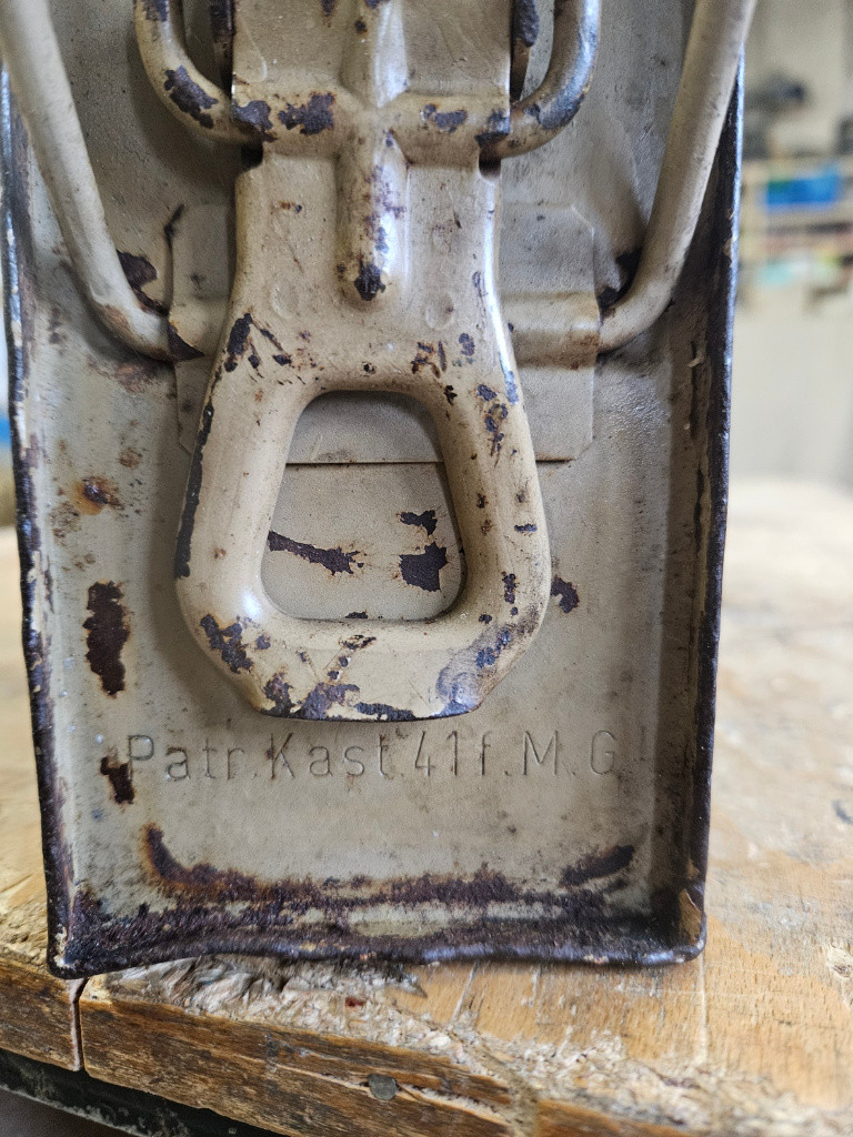 Popis:Muniční bedna, kastlík, zásobník MG PATR. KAST. 41f M.G. s původní barvou Afrikakorps?