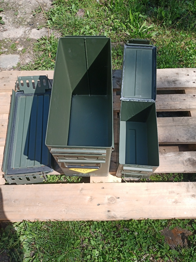 Nabízím použité hermetické muniční schránky. Malé M2A1 a velké M548. Různé šablonace. Všestranné použití, nejen na náboje... Pevné, odolné, dobře stohovatelné. Na výběr z několika kusů. Malé za 250Kč, velká za 500Kč. Rozumná dohoda možná...