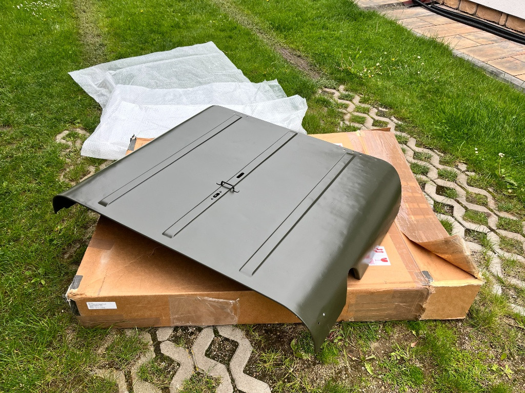 Prodám použitou kapotu na Mutt M151, viz foto.