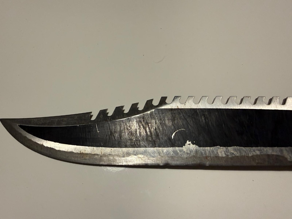 používaný nůž, testovací - sekal dřevo,ostří by se dalo srovnat ale není čas, z přechodu do rukojeti je lehce vůle, cenu nechám na nabídkách zaslat můžu zásilkovnou
