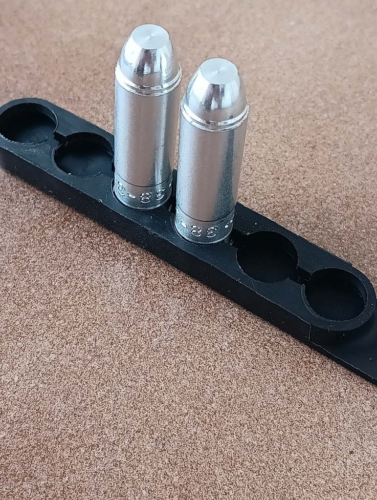 Nový, nepoužívaný gumový pásek pro rychlejší přebití revolveru. Zkoušeno se školními i ostrými .38 special, padnou a drží skvěle. Mám i více kusů, cena je možná dohodou Poslání není problém nebo předání Praha/Liberec. (školní náboje nejsou součástí)