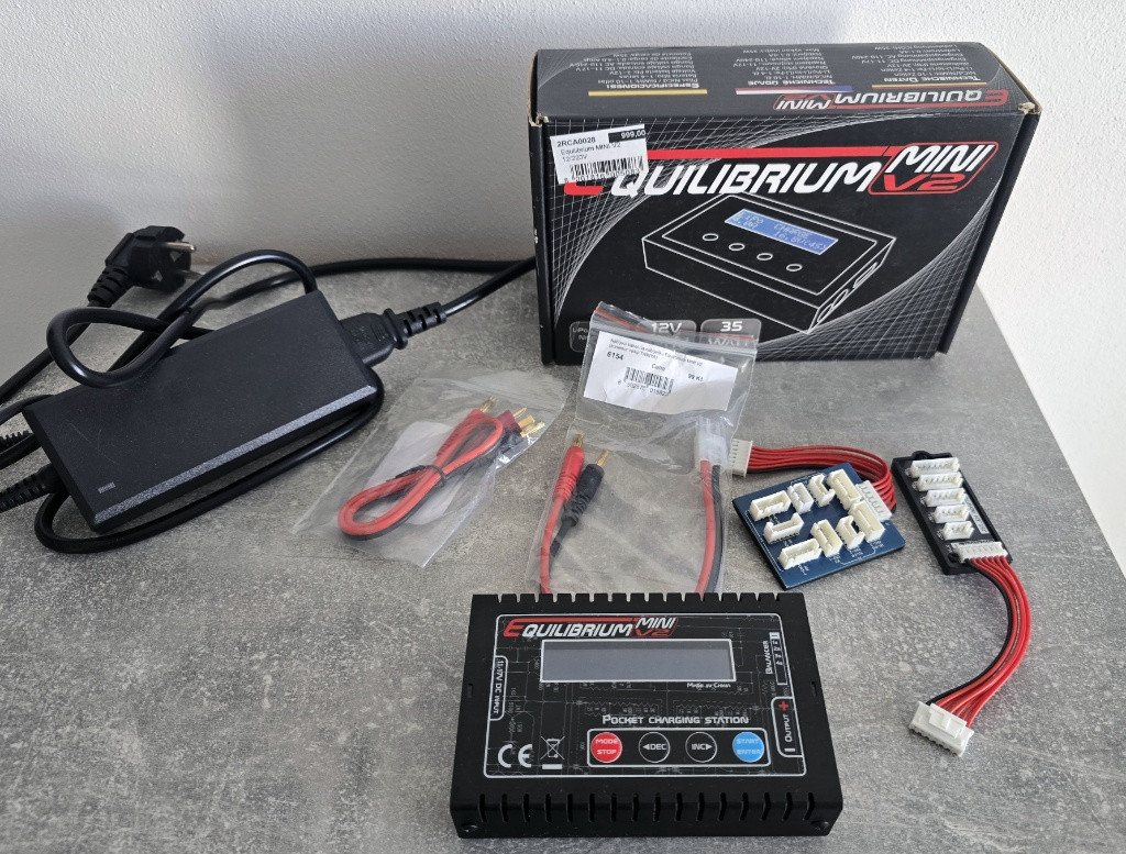 Prodám plně funkční spolehlivou nabíječku akumulátorů Equilibrium MINI V2 . Equilibrium Mini V2 umožňuje nabíjet všechny běžné typy článků (NiCd, NiMH, Li-poly, Li-ion, Li-Fe, Pb gelové), navíc je vybaven vestavěným čtyřkanálovým balancerem, který zajišťuje velmi bezpečné a komfortní nabíjení lithiových akumulátorů.
