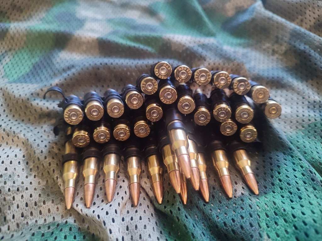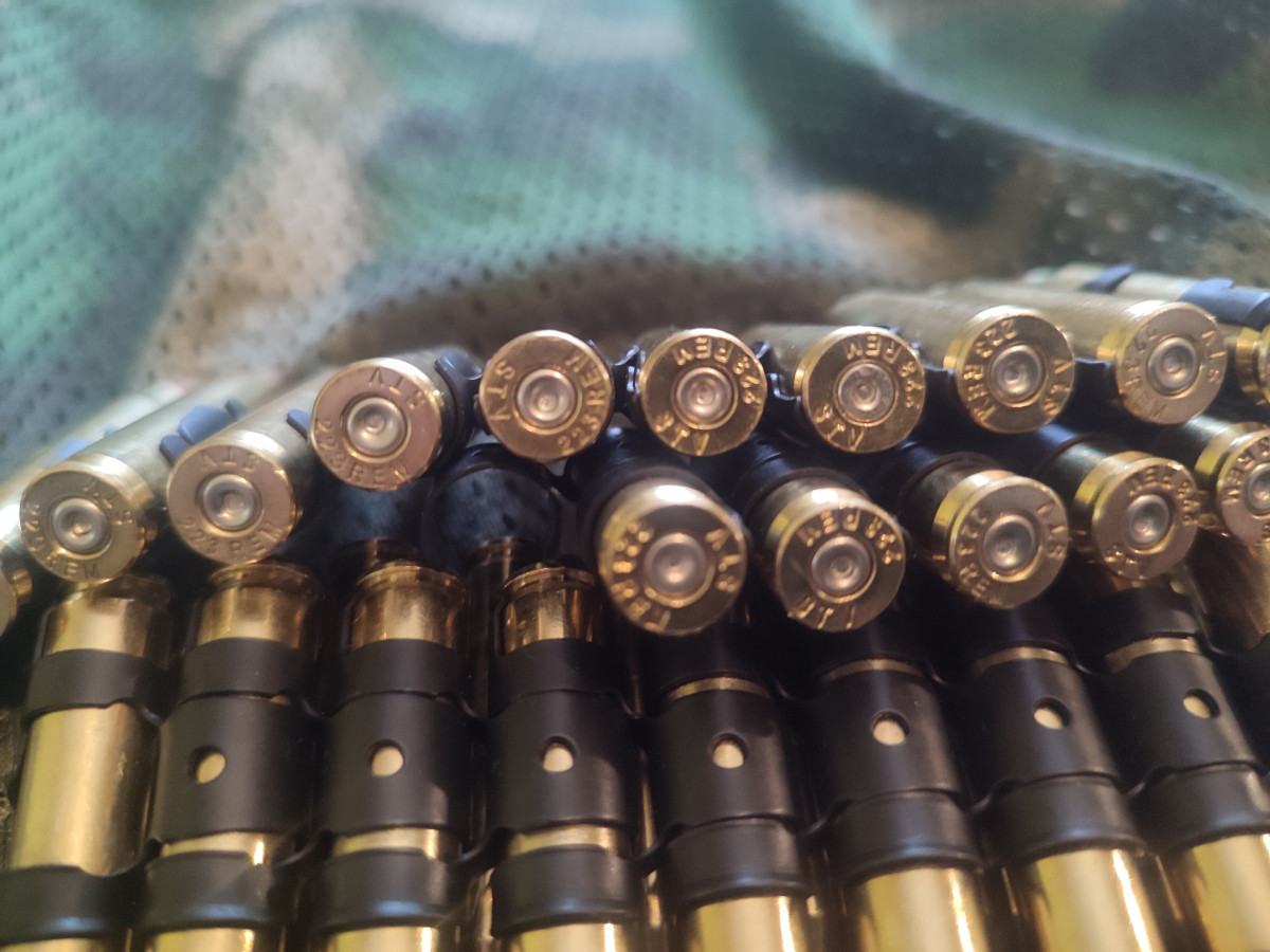 Prodám nábojový pás 223.rem. Tři kusy po dvanácti nábojích. Cena za kus 400
