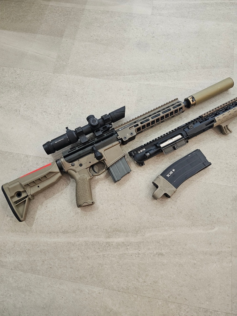 Prodám kompletní upper. Předpažbí, magnus komora, prodloužená CNC hlaveň, 4UAD guma, 5x Short mag (bez tlumiče, bez optiky a bez loweru). Za nic neměním a cena je naprosto pevná.