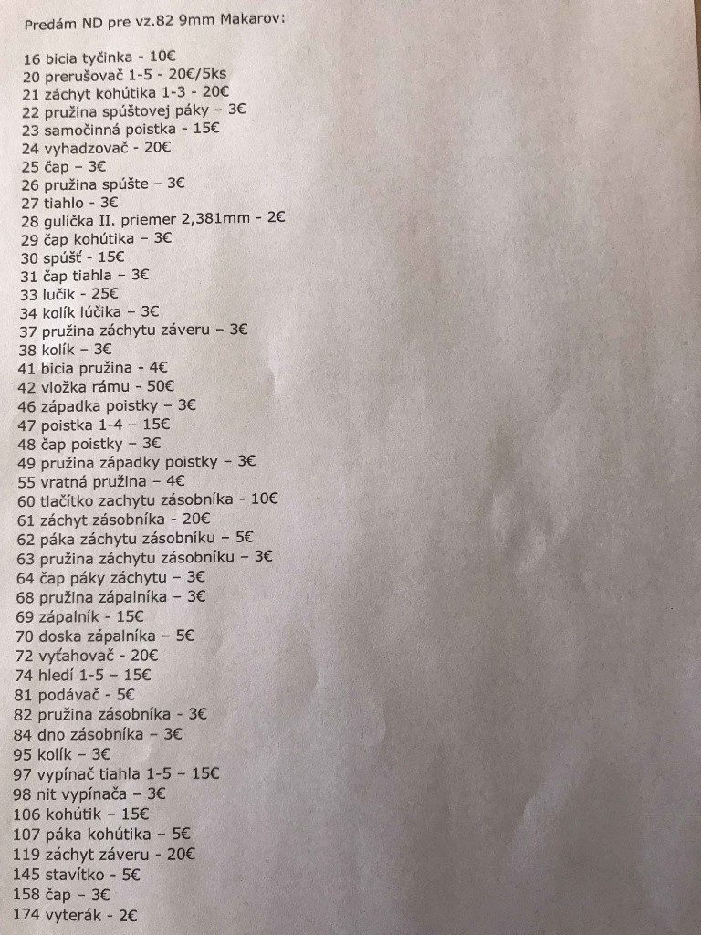 Predám nové zásobníky pre pištol vz.82/83 9mm. Cena 330,- kč za kus. Predám nové pažbičky, cena 600,- Kč za pár. Náhradné diely - zoznam pošlem na mail.
