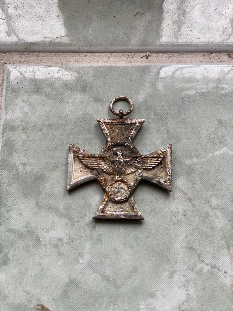 Prodám originál německý kříž za 18 let služby u policie. Kopaný ale zachovalý stav.
