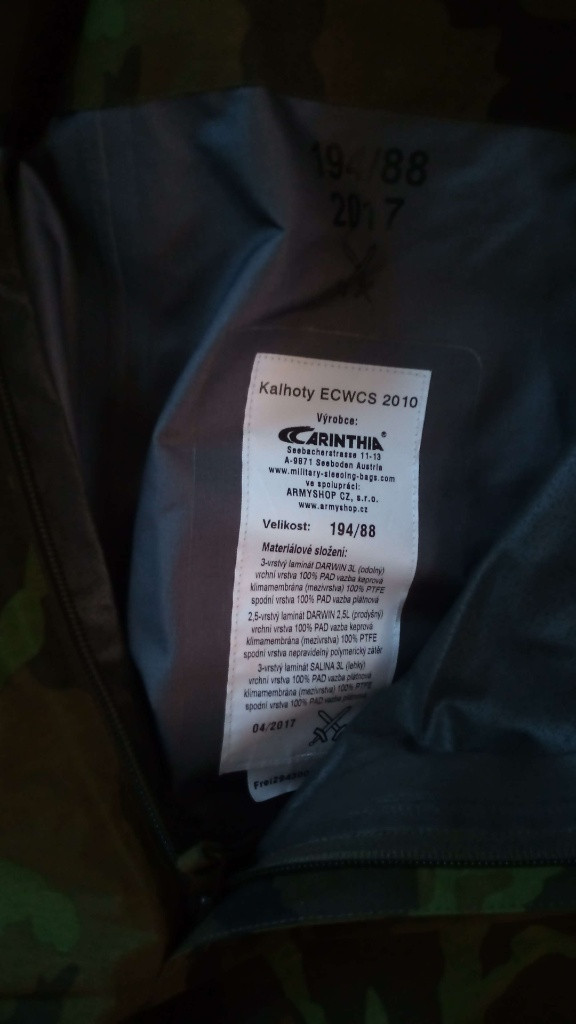 Popis:Nepromokavý komplet ECWCS 95