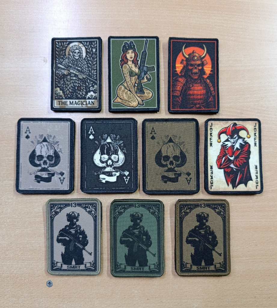 Prodám nášivky se suchým zipem v rozměru 9 cm na výšku Po kusech nebo i celek, mám více kusů.