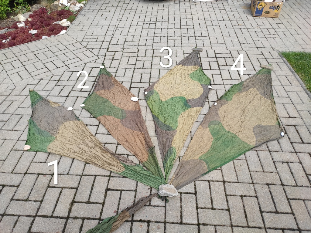 Prodám originál hedvábné dílce z německého padáku. Perfektně vyparane, NE vystřižene. Velice pěkné barvy. Jsou velké. Okamžitě k použití na opravu vrchlíku nebo jako stylový šátek / šál na reen nebo čundry. Cena 900 za kus. Mám i celá pole.