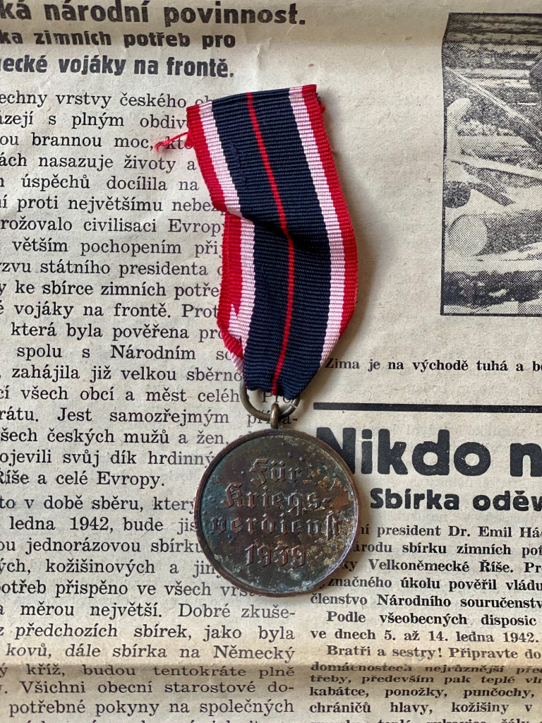 Zdravím, prodám originál německou záslužnou medaili se stuhou. Medaile má hezkou dobovou patinu, stuha velmi zachovalá. Nálezový stav. Cena: 600,- Kč + zásilkovna