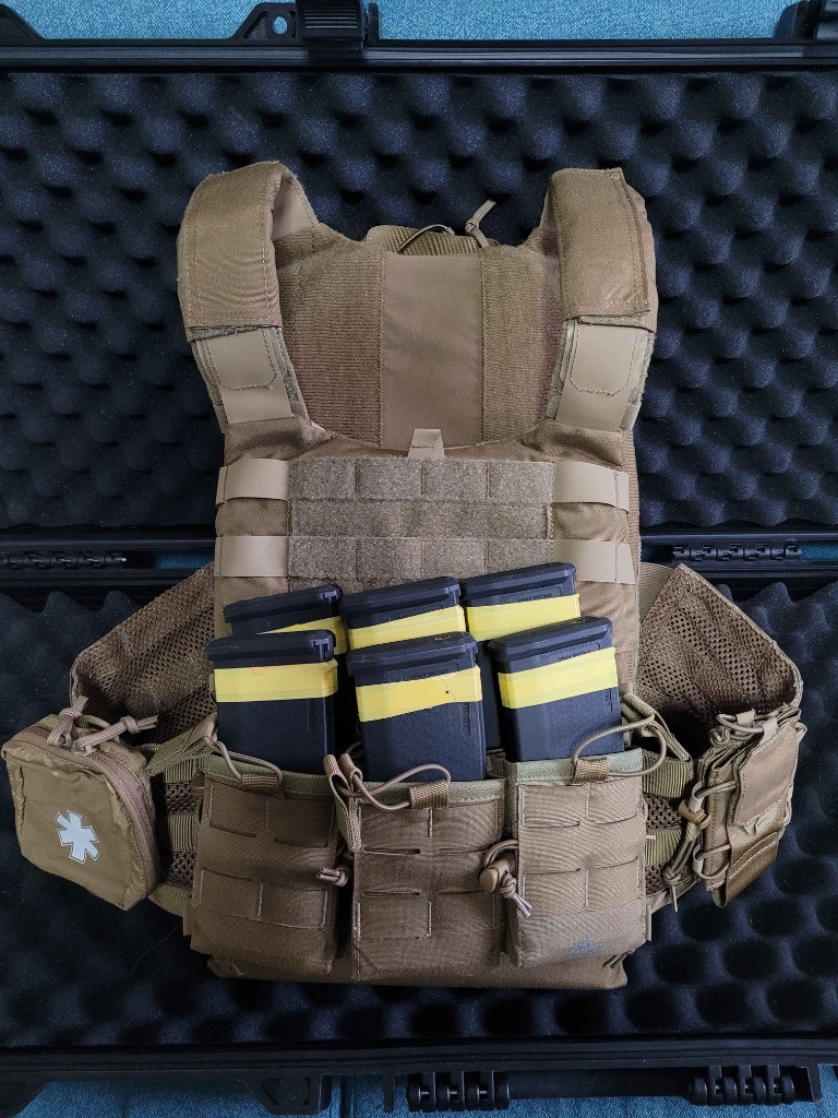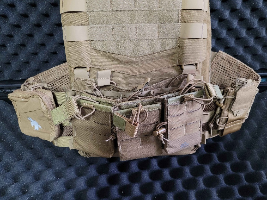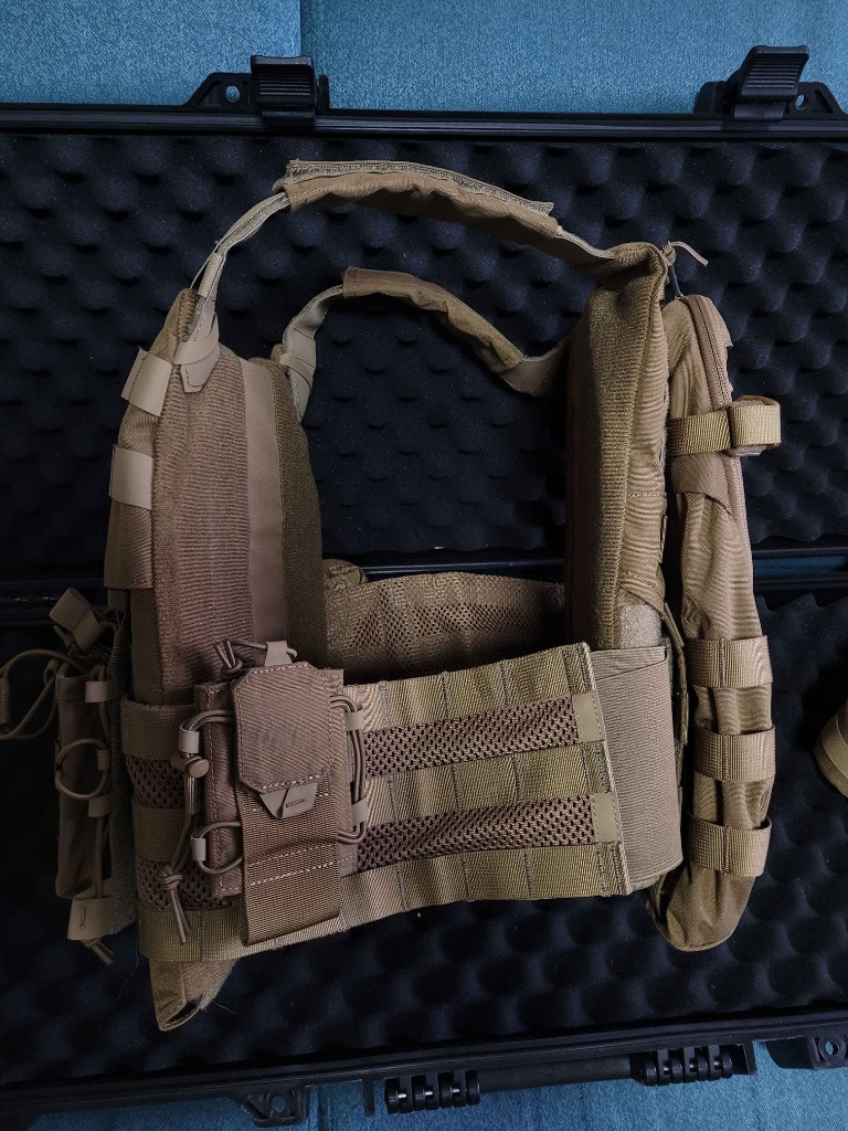Nabízím k prodeji nosič plátů Guardian od Helikonu. Nosič osazen 3 přídavnými sumkami na puškové zásobníky, sumkou pro vysílačku, sumkou pro malou lékárničku a batohem Guardian. K batohu přidám původní ramenní popruhy. Vše Helikon. Nosič v pěkném stavu, nošený pouze asi dvakrát. Rozumné dohodě se nebráním.